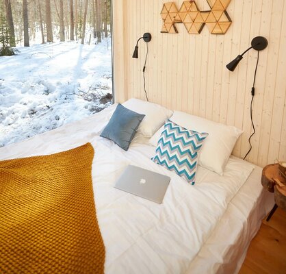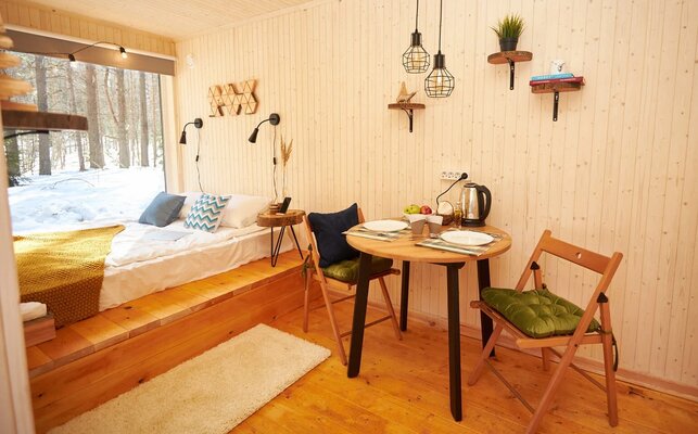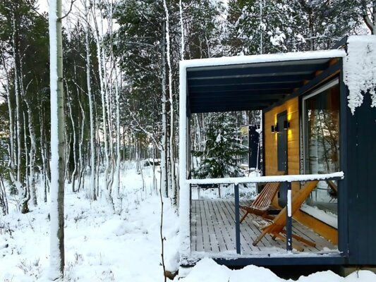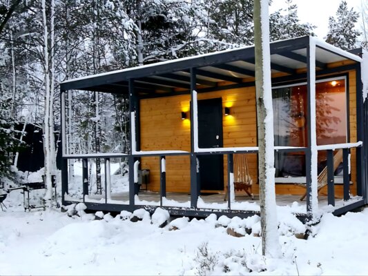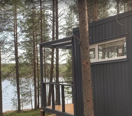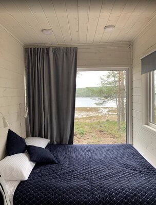 Всего в двух часах езды от Кандалакши, где расположен железнодорожный вокзал, вас ждут очаровательные двухместные домики с панорамными окнами, из которых открывается завораживающий вид на карельские пейзажи.