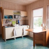 Турбаза может предложить вам аренду коттеджей со всеми удобствами. Они рассчитаны на проживание от 2 до 6 человек. Коттедж состоит из кухни-гостиной, спальни, санузла, коридора и небольшой открытой веранды. Вся мебель и бытовая техника на базе новые.