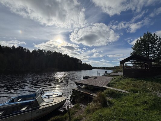 На территории комплекса к вашим услугам русские бани, беседки с мангалами и коптильнями на берегу реки, оборудованный пирс с лодками и удобные мостки для купания.
