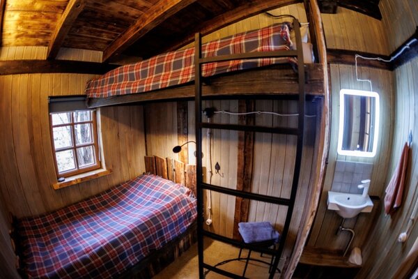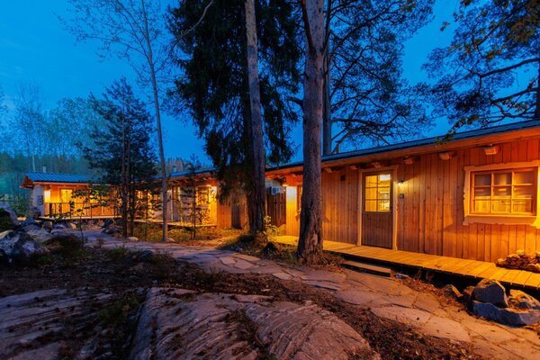 В отеле царит уютная атмосфера, где гости могут насладиться фуршетом с шампанским или карельской настойкой. После изучения природы Северного Приладожья, гости могут отдохнуть в аутентичных домиках «Лоухи», «Хийси», «Йоуккахайнен» или в доме-музее.