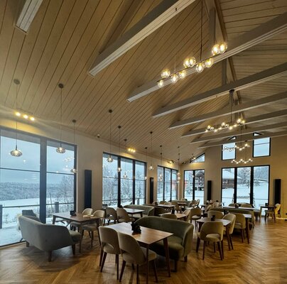 Наслаждайтесь блюдами из местных продуктов на открытой террасе или в уютном зале с панорамными окнами, через которые открывается захватывающий вид на лес и озеро.