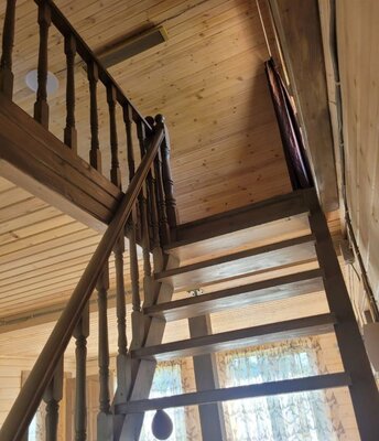 Дом полностью укомплектован для комфортного проживания. На первом этаже находится современная кухня, просторный диван и камин, а на втором — светлая и уютная спальня. Также имеется санузел с душевой кабиной, бойлер, обеспечивающий горячую и холодную воду.