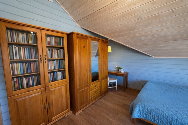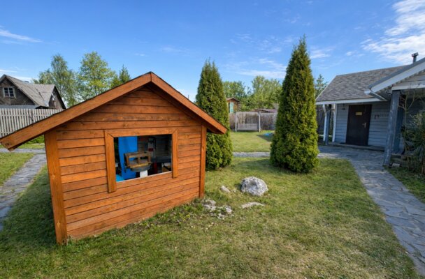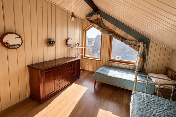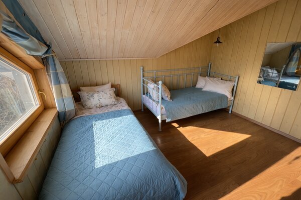 На территории есть детская площадка, баня на дровах, зоны для барбекю и костра. Для маленьких гостей — кроватка, стульчик, игрушки и настольные игры. Насладитесь спокойствием и уединением на ухоженной территории, а песчаный пляж находится всего в нескольких шагах!