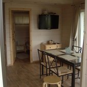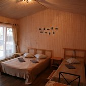 Всё отлично. Территория шикарная. Домики прямо в лесу. Очень живописное место. Рядом Онежское озеро и озеро в лесу ещё, в котором купались. Дорога к базе хорошая, даже не ожидали, в домиках была собственная кухня со всей необходимой посудой. Магазины рюгедалеко в посëлке, км 2 . Ездили на машине. 1 ч езды и рядом Петрозаводск. Приветливый администратор. Всём спасибо. Остались довольны.