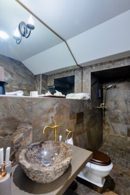 Комплекс включает в себя роскошный основной дом с тремя спальнями, кабинетом, просторной кухней, столовой и уютной каминной зоной. Отдельно расположен двухэтажный банный комплекс с хаммамом, джакузи под открытым небом, бильярдной, спальней и кухней-гостиной. К вашим услугам также гостевой дом с двумя отдельными блоками, эллинг, гараж, беседка и дом для персонала.
