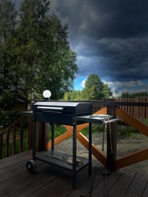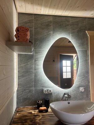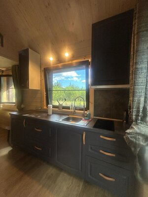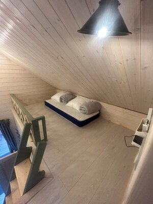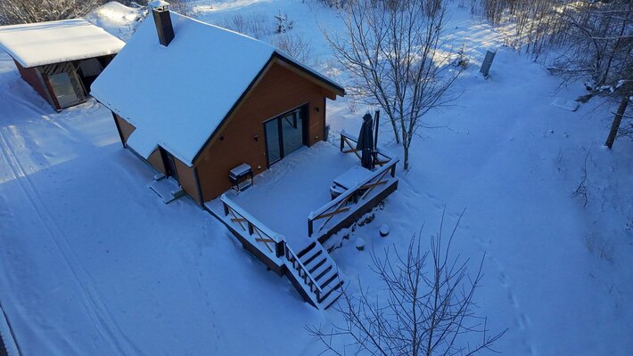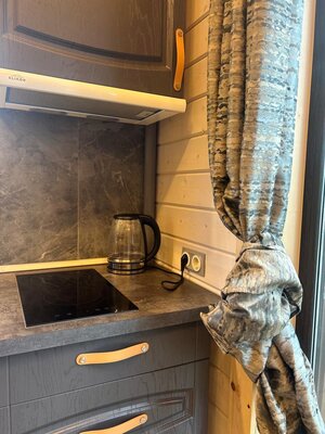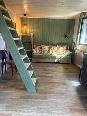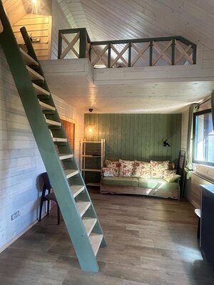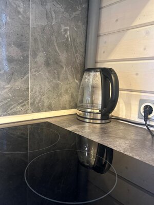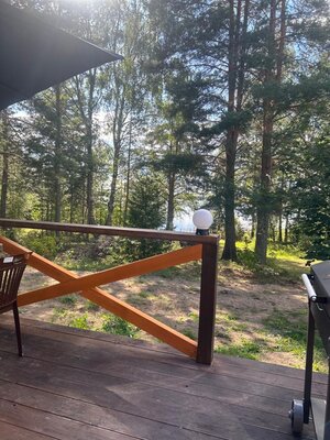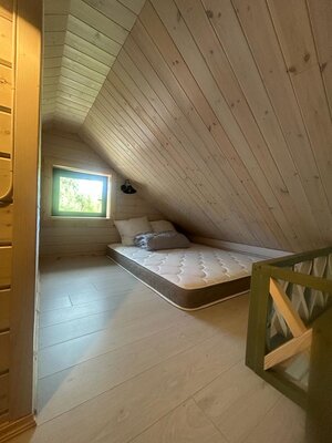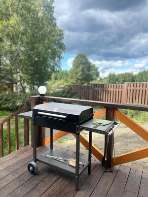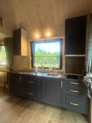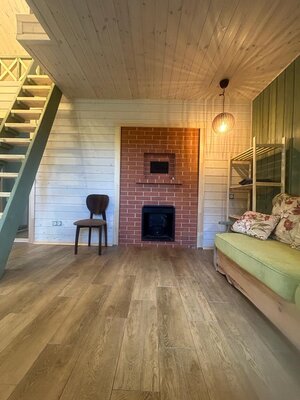 Здесь вас ждет полностью оборудованная кухня с удобным уголком, необходимой посудой, холодильником, микроволновой печью и электроплитой. Отдохните душой и телом в дровяной бане. В стоимость проживания включены мягкое постельное белье и полотенца. На террасе вас ждет большой зонт, а также мангал с шампурами и решеткой для пикника на свежем воздухе.