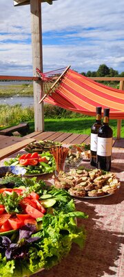 На территории есть баня, пирс и все необходимое для рыбалки. Вы также сможете воспользоваться мангалом, коптильней и гребной лодкой, а также заказать экскурсии.