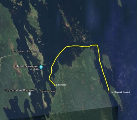 Небольшая водная экскурсия от деревни Оятевщина (крайняя точка на материке около о. Кижи, куда можно добраться на автомобиле) до о. Кижи. Экскурсия проходит на небольшом катере, вместимостью 4 человека.