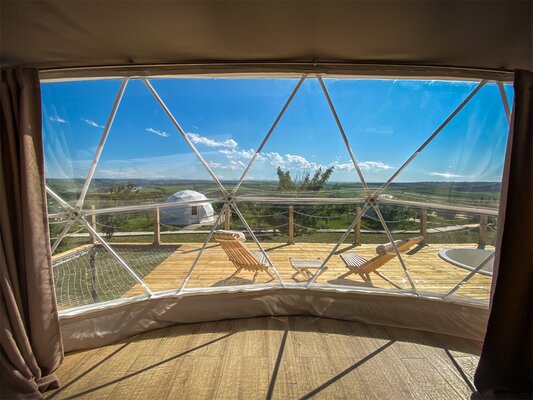 Расслабьтесь в подогреваемом чане под открытым небом, любуясь потрясающими пейзажами. Проведите ночь под звездным небом в мягком и уютном куполе, восстанавливая душевное равновесие и наслаждаясь покоем.