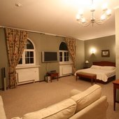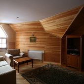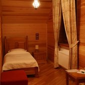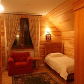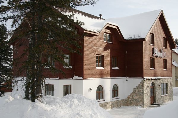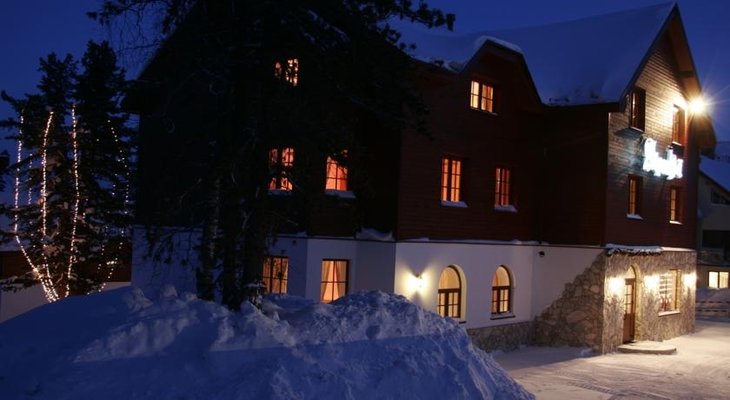 Отличный отель. Находится в 150-200 метрах от кресельного подъемника "канатка". Можно прямо на сноуборде доехать с горы до отеля. Стоимость подъема на Канатке 90 руб. Отель оформлен в европейском стиле. Тихий и уютный. Единственное что огорчило меня, что завтрак начинается в 9-00 и подъемники начинают работу в 9-00. Завтрак - шведский стол. Не очень разнообразный. По запросу готовят -...