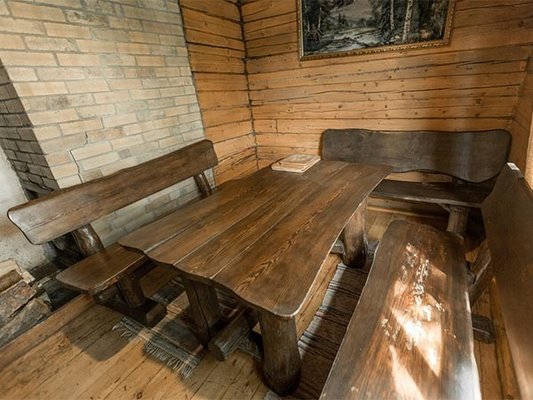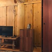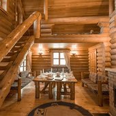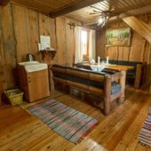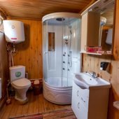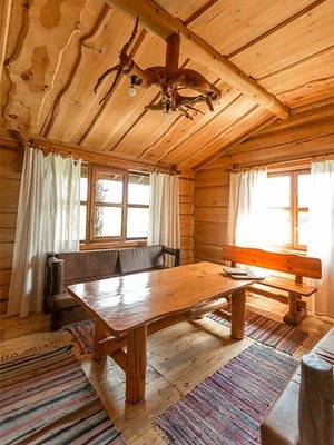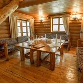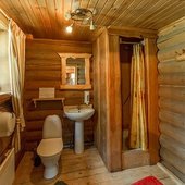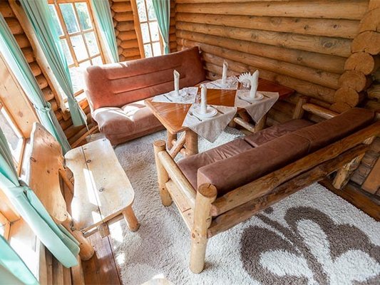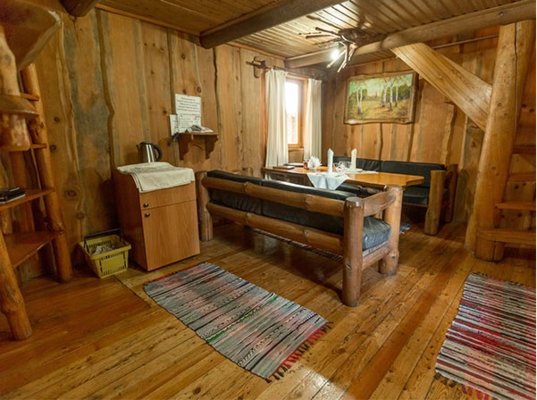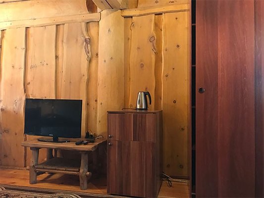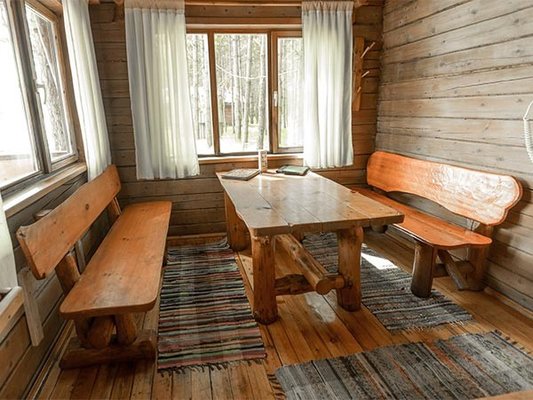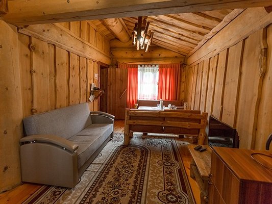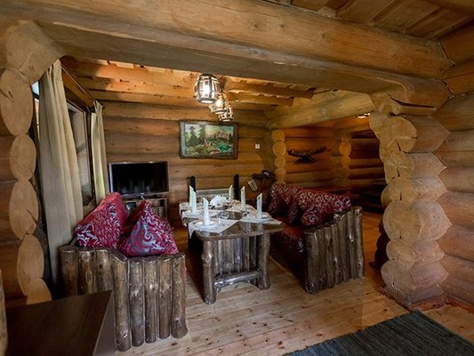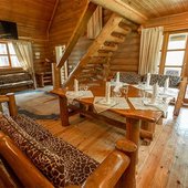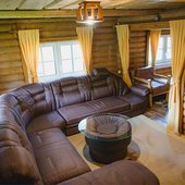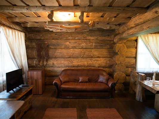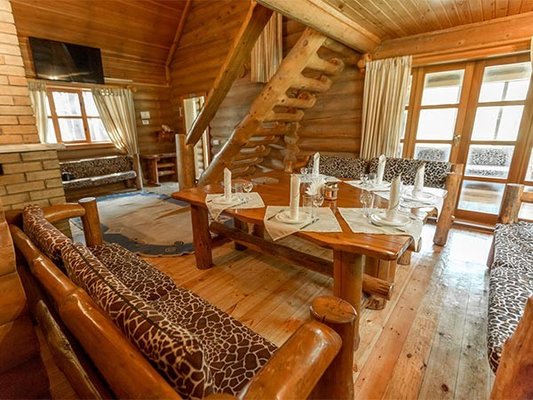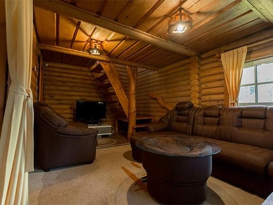 Гостям предлагается проживание в одном из 6-и деревянных домиков. Одноэтажные и двухэтажные коттеджи со всеми удобствами рассчитаны на проживание от 2-х до 10-и человек. Во всех домах есть несколько спален и гостиные, в некоторых – обеденная зона.