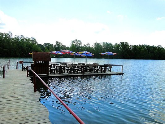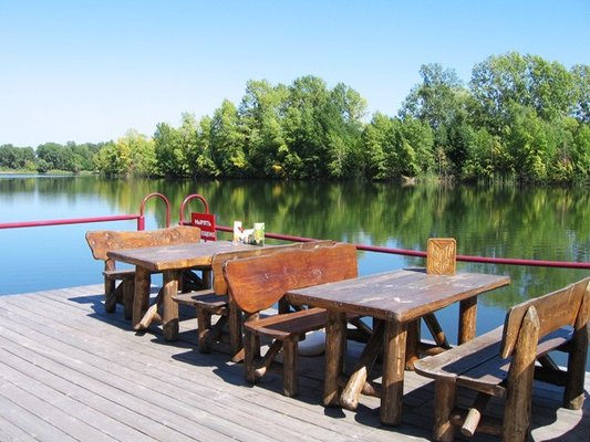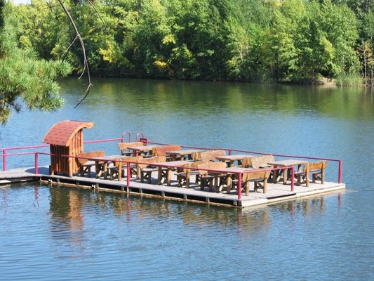 На территории есть парковка, ресторан и летнее кафе на берегу, теннисный корт, спортивные площадки, причал для лодок, беседки и места для мангалов, пункт проката инвентаря.