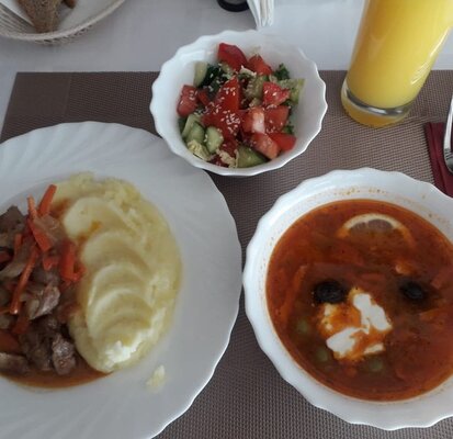 Можно порыбачить на берегу реки. Удочки и снасти не выдаются и в аренду не сдаются.