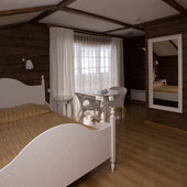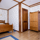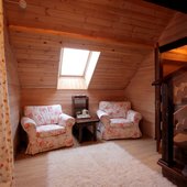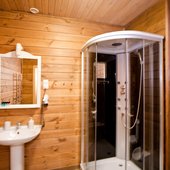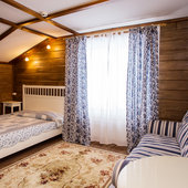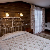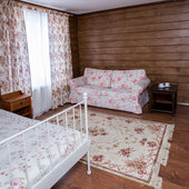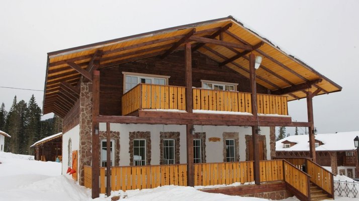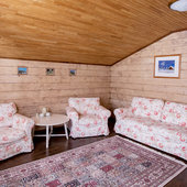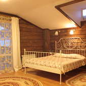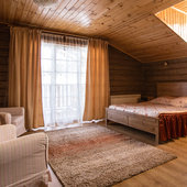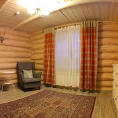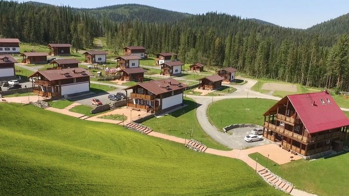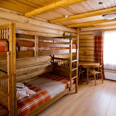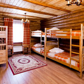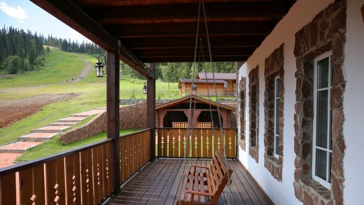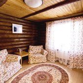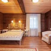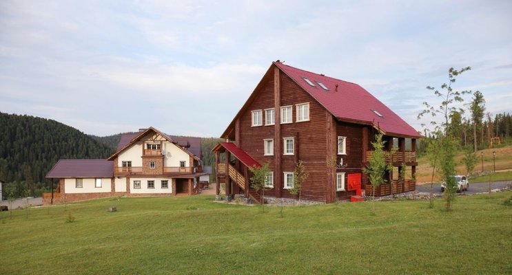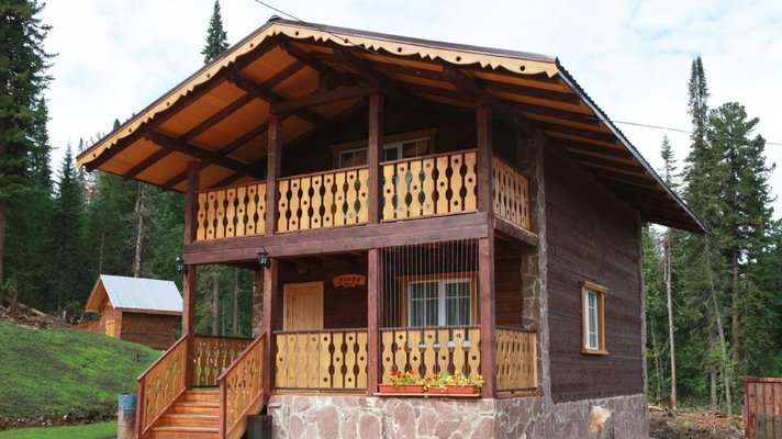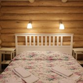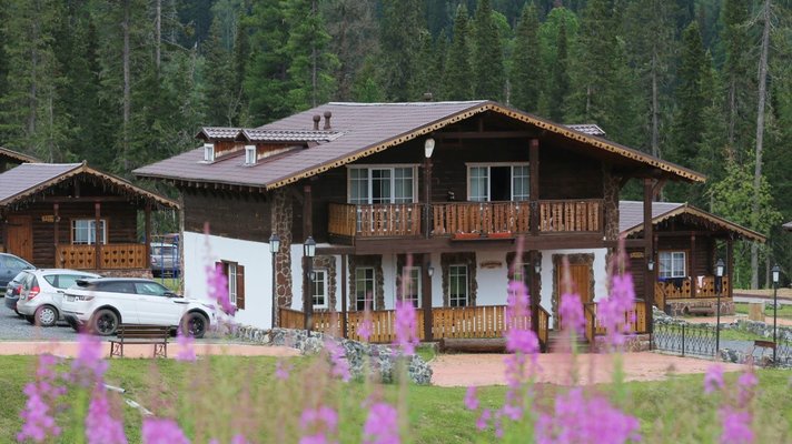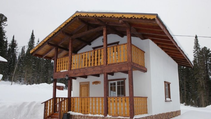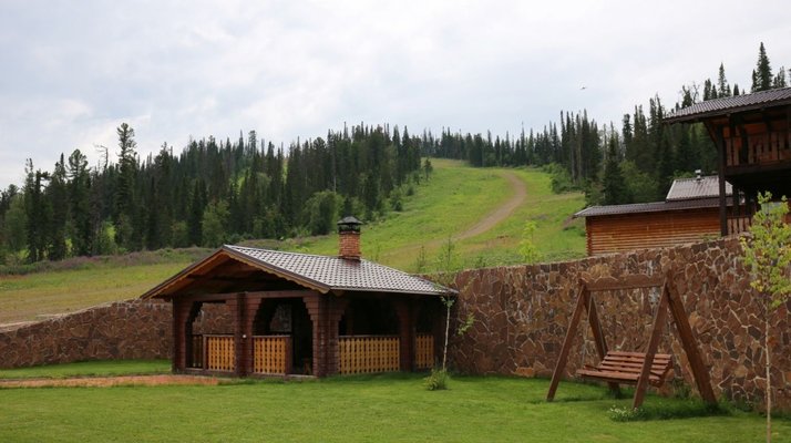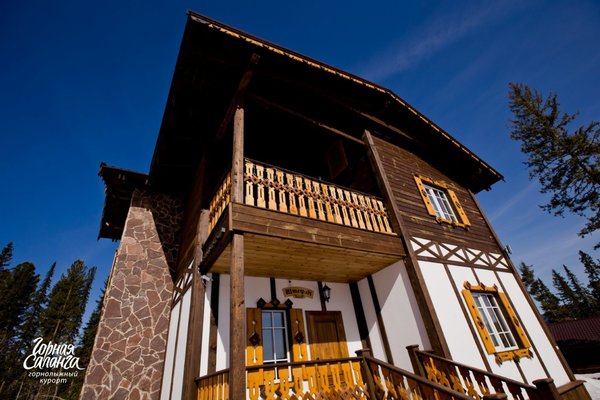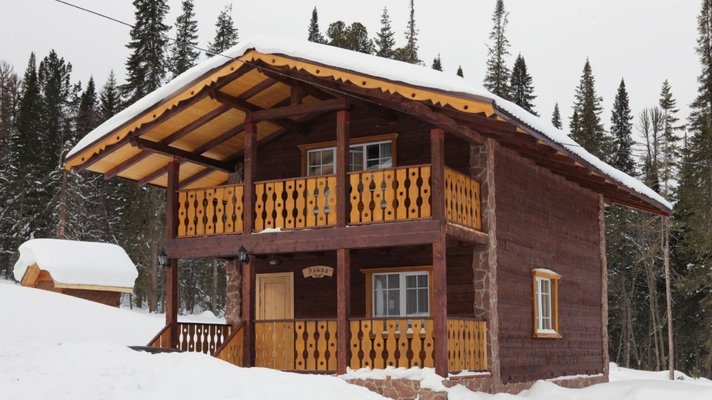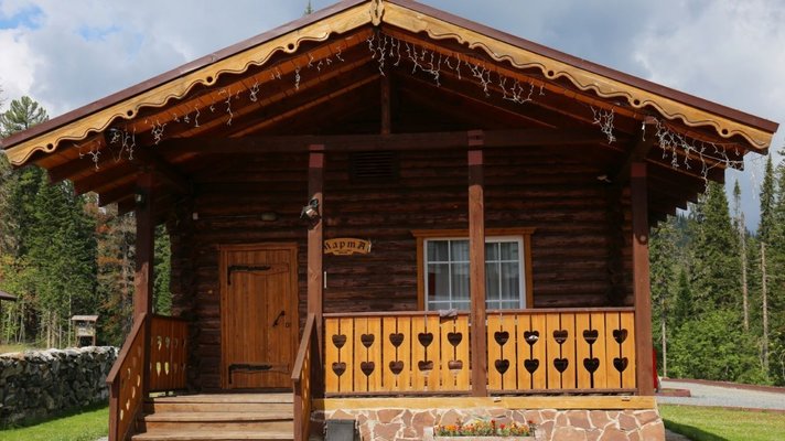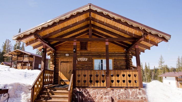 - номера в добротных домах в стиле альпийских шале, бани, фитосауна, ресторан таёжной кухни, бильярд, бар;