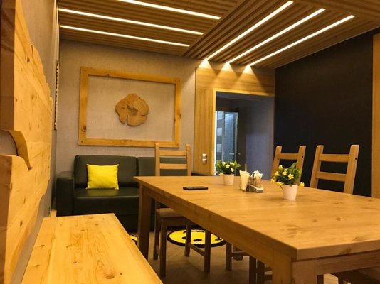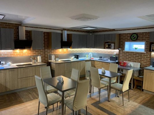 В отеле для приготовления пищи предусмотрена общая кухня, которая укомплектована бытовой техникой и посудой. При желании возможно пожарить шашлык, воспользовавшись мангалом на территории комплекса.