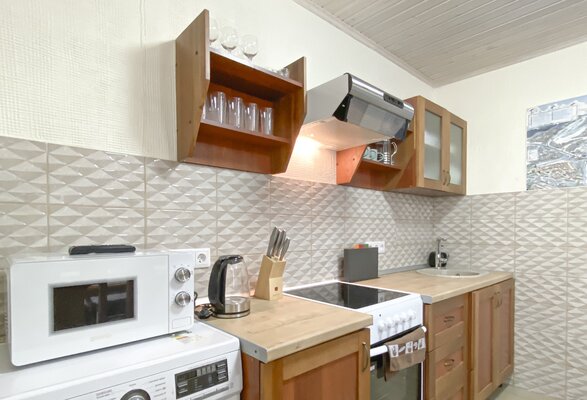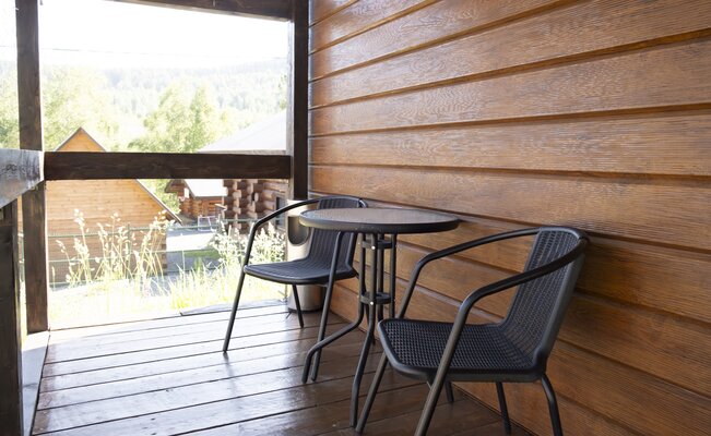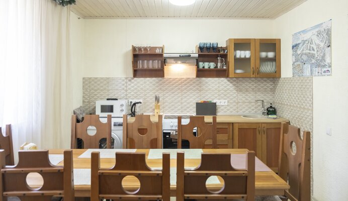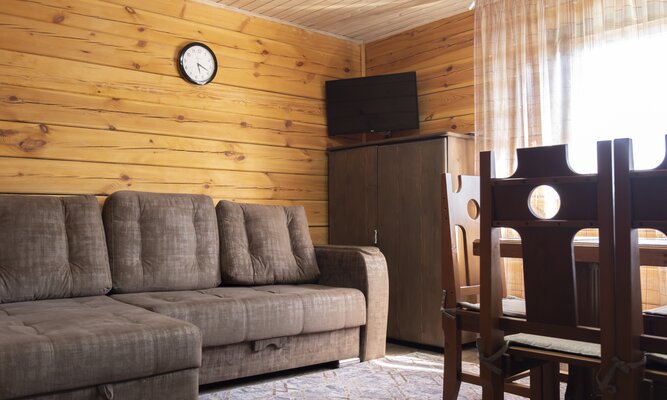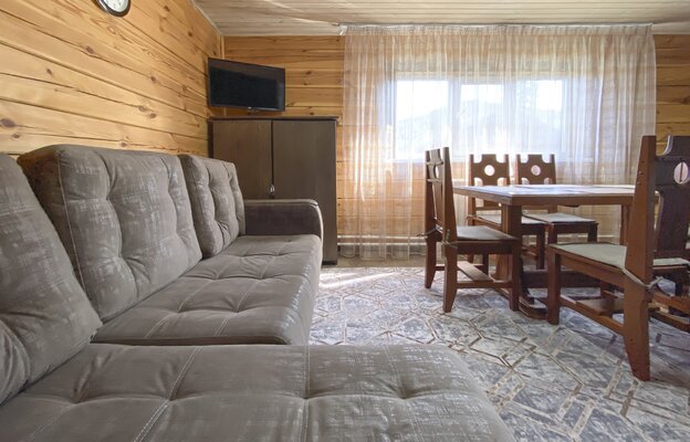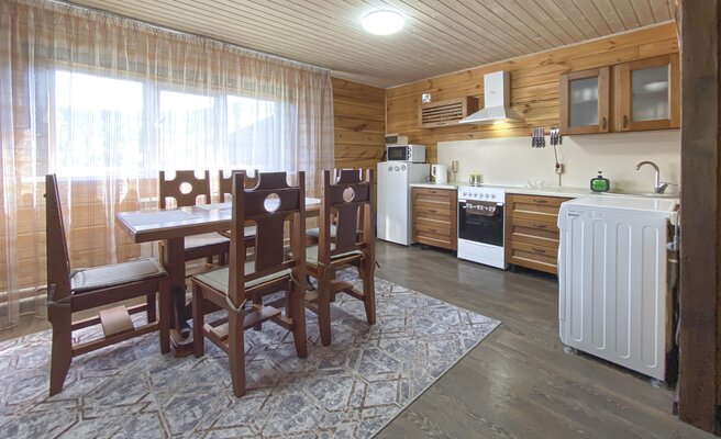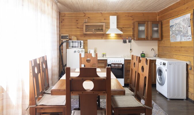 На закрытой территории вас ждут два полностью оборудованных коттеджа (одно- и двухэтажный) с кухней-гостиной, душем и уютными спальнями. В каждом доме — вся техника, теплый пол и сушилка для снаряжения. После катания — зона барбекю и две русские бани на дровах для полного релакса.