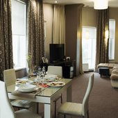К услугам гостей широкий номерной фонд, разнообразный по ценовой политике. Каждая категория включает в себя комфортабельную мебель из высококачественных сортов дерева, кровати с ортопедическими матрасами, современную технику и собственные ванные комнаты. Помимо этого, предоставляется беспроводной доступ к сети Wi-Fi.