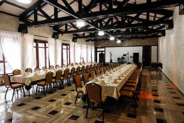 Гостям предоставляется аренда Банкет-бара. Это лучшая площадка для отдыха и праздника любого формата в любое время года. Большой зал площадью 90 м2, вместимостью до 60 гостей объединяет в себе ресторан, караоке, банкетный и бильярдный залы, а так же банные номера. Вы можете провести банкет или фуршет в честь дня рождения, семейного торжества или свадьбы, сделав заказ в ресторане «Вечный Зов». При бронировании Банкет-бара предоставляется скидка 10% на основное меню.