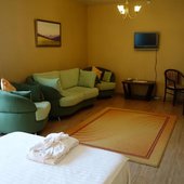Гостиница располагает восемью просторными, светлыми номерами со всем необходимым — телевизором, кабельным телевидением, доступом в интернет, кондиционером, мини-баром, - для полноценного отдыха.