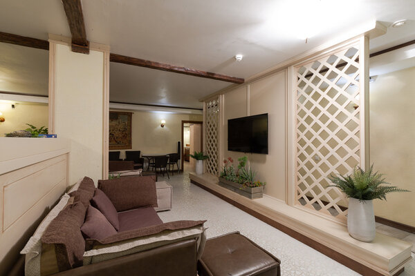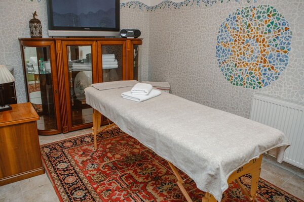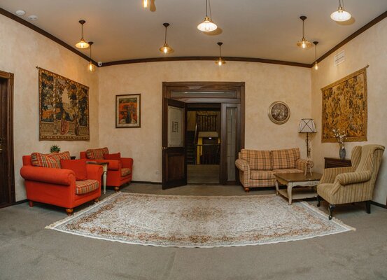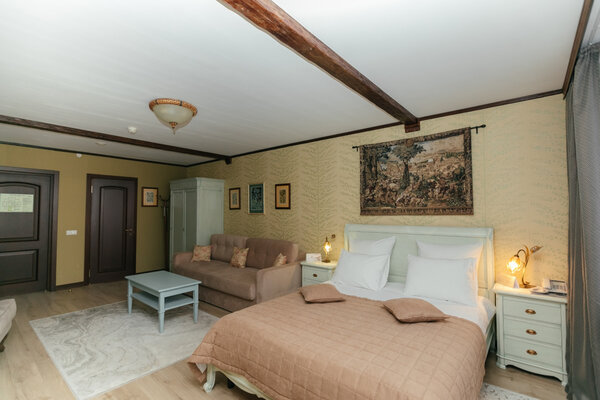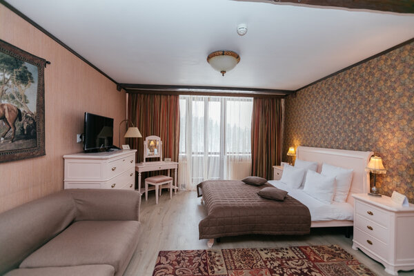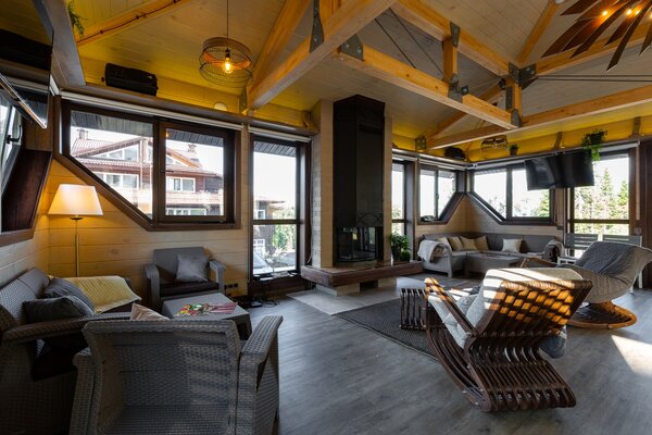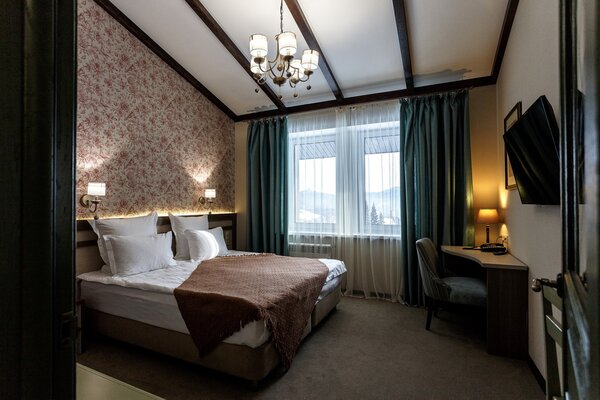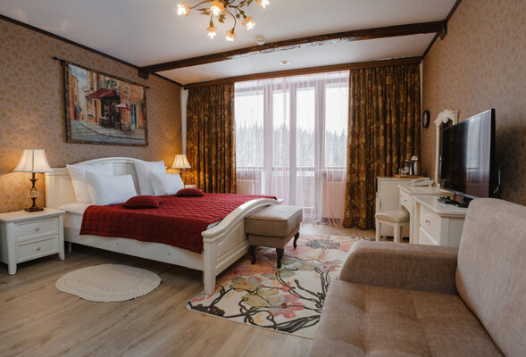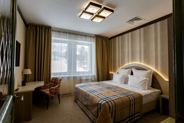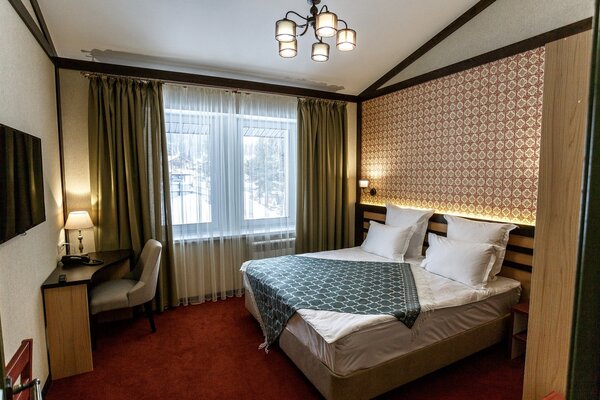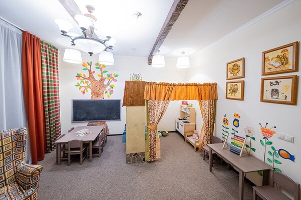 Помимо развитой инфраструктуры курорта (кафе, магазины, прокат лыж), на территории комплекса вас ждет: ресторан с изысканной русской и европейской кухней, просторный банкетный зал, летняя веранда и зона для барбекю. Для полноценного релакса и активного досуга предусмотрены баня, спа-центр, тренажерный зал, игровая комната и детская площадка. В зимний сезон к вашим услугам удобная камера хранения лыж. Расстояние до Новокузнецка — около 170 км.