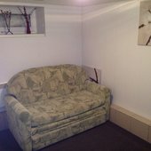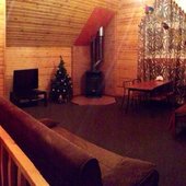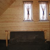 Размещение предлагается в двух комнатах. На третьем этаже одна комната с двуспальной кроватью и разборным диваном. В комнате полуэтажа небольшая комната с разборным диваном на 2 места.