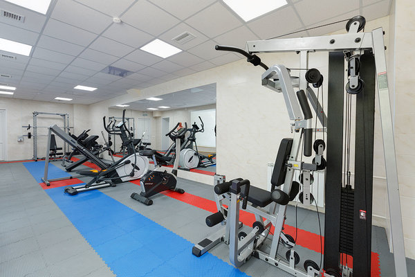 Современный тренажерный зал доступен всем желающим в здании бассейна.