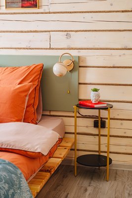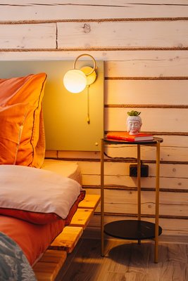 В четырех спальнях с двуспальными кроватями гости смогут отдохнуть и расслабиться. Дом оборудован двумя зонами отдыха с диванами, проектором и настольными играми, а также местами для работы фрилансеров. У дома есть собственная скважина, позволяющая пить воду прямо из крана, а на кухне гостей ожидает небольшой запас продуктов, включая масло, соевый соус, чай, кофе, сахар, специи, сладости и другие необходимые припасы. Кроме того, предоставляются все необходимые средства гигиены, бытовая техника и гейзерная кофеварка, а также два санузла с душем.