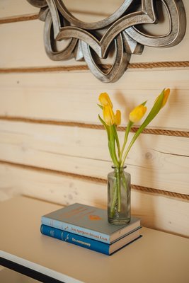Для детей в доме есть книги, игрушки, а по запросу доступны кроватка и стульчик. На улице есть горка и плюшки, чтобы занять малышей. Возможно даже заказать услуги зоо-няни.