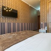 Все номера гостиницы отличаются стильной обстановкой, в каждом установлена новая мебель. Вне зависимости от категории Вы получите в пользование телевизор, шкаф, кондиционер, холодильник и электрочайник с чайными принадлежностями. Также каждый номер оснащен отдельной ванной комнате, в которой находятся тапочки и халат.