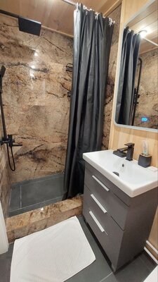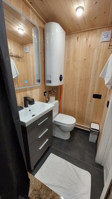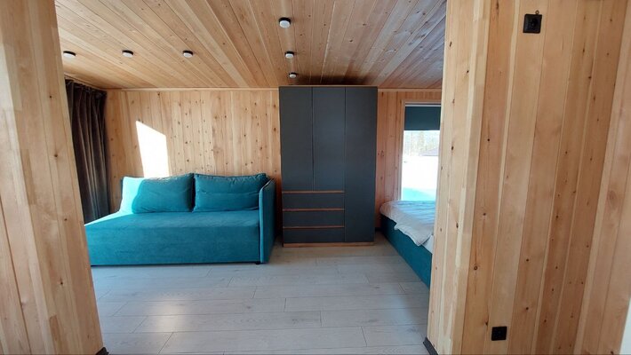В коттедже предусмотрены все необходимые удобства для приятного отдыха, включая бытовую технику и средства гигиены. Одним из преимуществ является наличие собственной скважины, что позволяет использовать питьевую воду прямо из крана. Внутри коттеджа имеется санузел с душем и современной сантехникой.