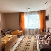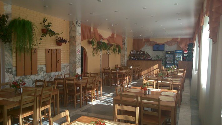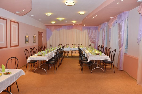 Банкетный зал рассчитан на 20-30 человек. Стоимость без услуг поваров — 1100 рублей/час. Если требуются услуги повара, то оплата по меню. Меню обговаривается заранее с административным персоналом гостиницы.