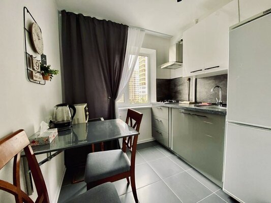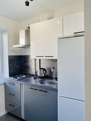 В апартаментах имеется все необходимое для комфортного проживания, включая бытовую технику - телевизор, холодильник, микроволновую печь, электрический чайник, стиральную машину. Также предоставляются посуда, постельное белье, полотенца, гель для душа, чай и кофе. Для удобства гостей есть сушилка, утюг и гладильная доска.