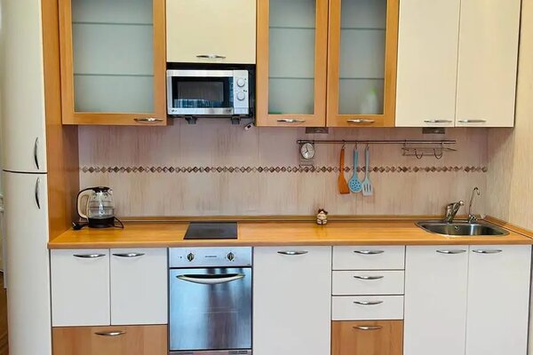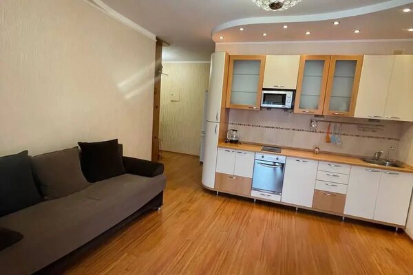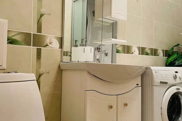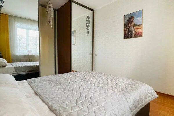 Квартира очень светлая с современным ремонтом и лоджией. В ней есть две раздельные спальные зоны с двуспальной кроватью и диваном. На кухне есть вся необходимая посуда и современная техника: микроволновая печь, духовая печь, стиральная машина и утюг. Доступен высокоскоростной Wi-Fi.