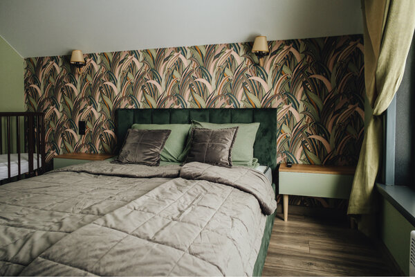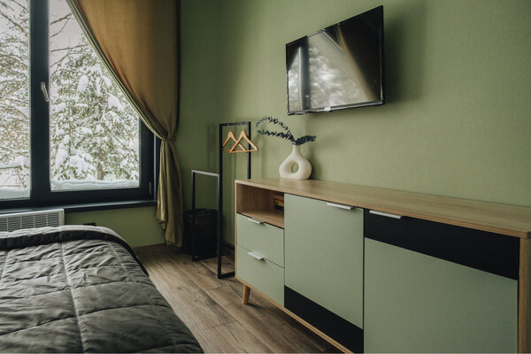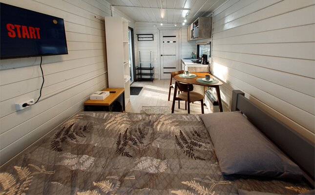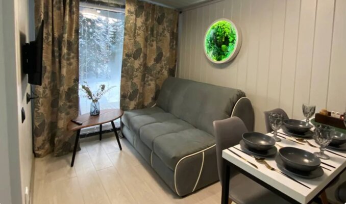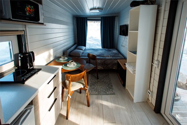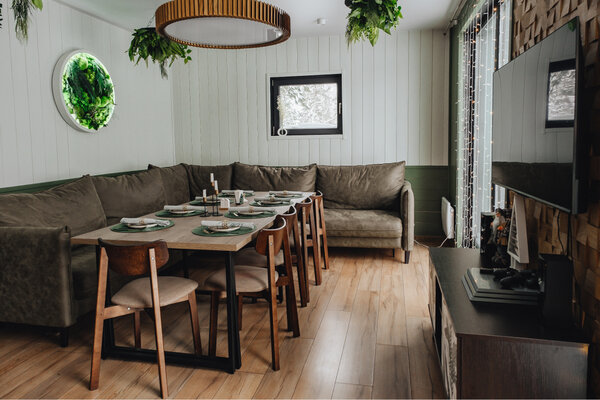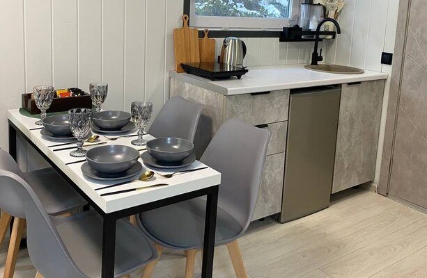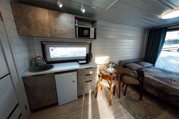 К размещению предлагаются три современных эко-дома разной вместимости — от 2 до 12 человек. Все дома схожи по комплектации: комфортные спальные места, теплые полы, оборудованная кухня с техникой и посудой, обеденная зона, совмещенный санузел с душем, туалетными принадлежностями, феном и тапочками. Дома Couple и Family одноэтажные. Дом Friends — большой двухэтажный коттедж с двумя санузлами и просторной гостиной, идеальный для больших компаний. Каждый дом имеет террасу с видом на горы и лес.