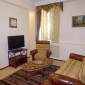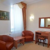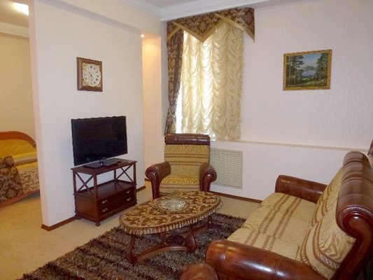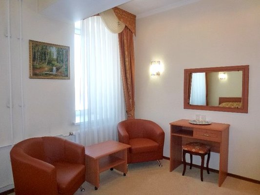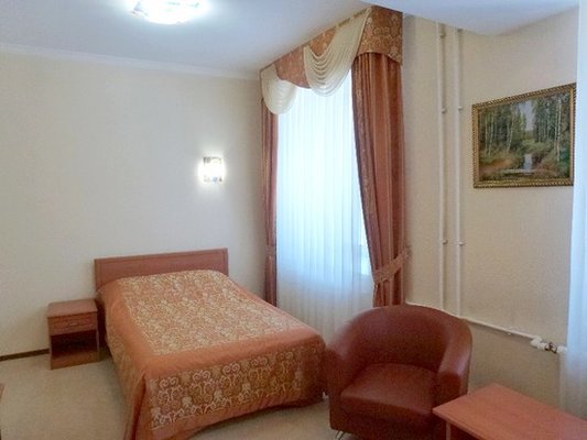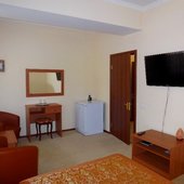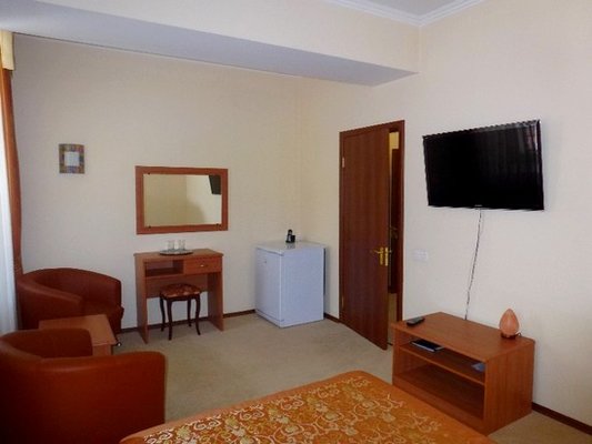 Номерной фонд представлен категориями «Стандарт» и «Люкс». Интерьер номеров выполнен в светло-бежевых тонах. Из мебели и техники имеется все самое необходимое для комфортного проживания.