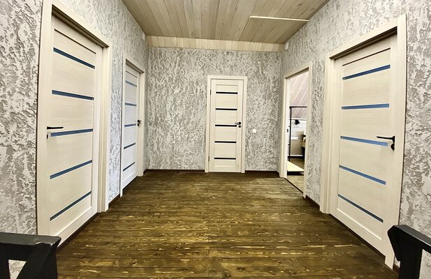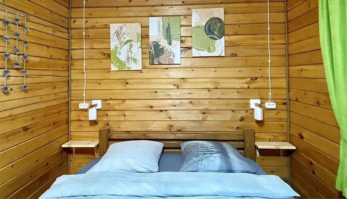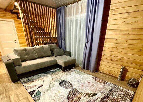 Двухэтажный коттедж из кедрового бруса расположен на благоустроенной территории по улице Рябиновая. Дом рассчитан на комфортное размещение до 13 человек и включает шесть спален, уютную гостиную и полностью оборудованную кухню. Коттедж оснащен всей современной бытовой техникой: микроволновой печью, посудомоечной машиной, холодильником, ЖК-телевизором, феном и стиральной машиной.