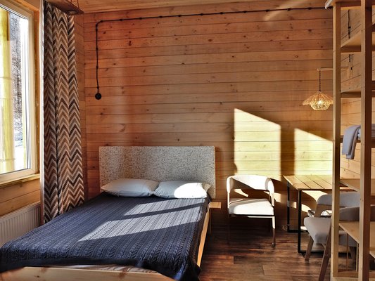 Здесь гости могут насладиться уютом и комфортом. Дом оборудован собственной системой отопления, на первом этаже и в санузлах установлены подогреваемые полы, а горячая вода доступна круглосуточно. Из спален открывается завораживающий вид на окрестности.