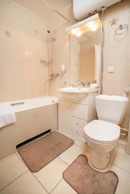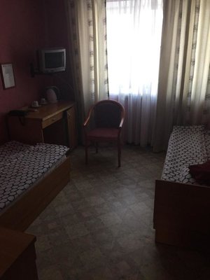 Номера имеют классическое оформление в нейтральной цветовой гамме и располагают телевизором, а также собственной ванной комнатой.
