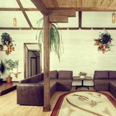 В домах создана уютная атмосфера и всё предусмотрено для вашего комфортного проживания. Гостиные в домах оснащены удобными диванами и большими телевизорами.