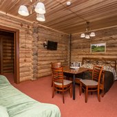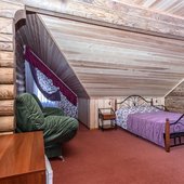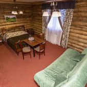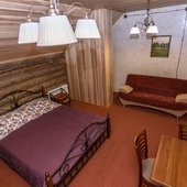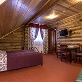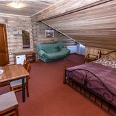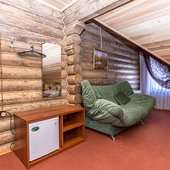 Трехэтажное бревенчатое здание гостевого дома, окруженное живописной сибирской природой, расположилась на подъезде к горе Зеленая. Отдыхающих ожидают уютные 2-х местные номера категории «Стандарт» и 3-х местные 3-комнатные «Семейные» номера. В каждом имеется ванная комната с душем, необходимые предметы мебельного гарнитура, холодильник и телевизор.