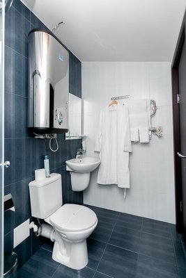 Комфортабельные номера обставлены современной мебелью и располагают телевизором с плоским экраном и кабельными каналами. В собственной ванной комнате к вашим услугам душ и бесплатные туалетно-косметические принадлежности.