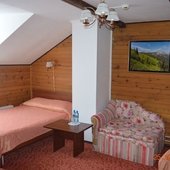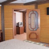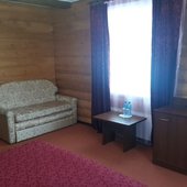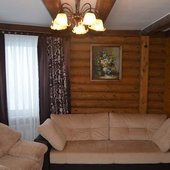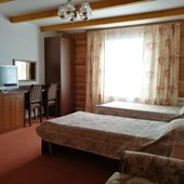 Гостевой дом построен из хвойных пород дерева. Имеет выгодное положение относительно горнолыжных трасс – на склоне горы Зеленая, первый от трассы и напротив двухместного кресельного подъёмника «Каскад-Подъем».