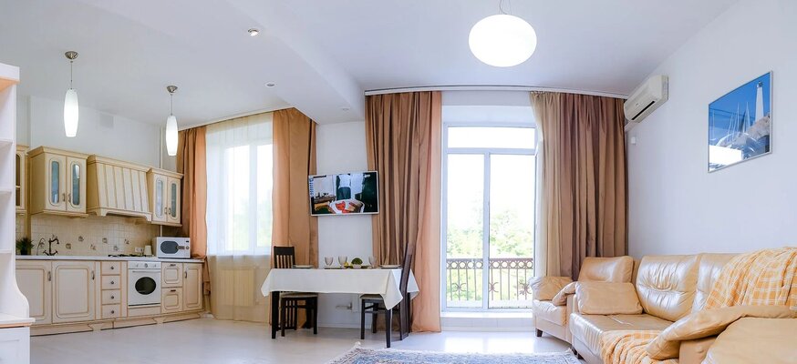 Апартаменты находятся в самом сердце города, в окружении развитой инфраструктуры. До любой точки города легко добраться общественным транспортом.
