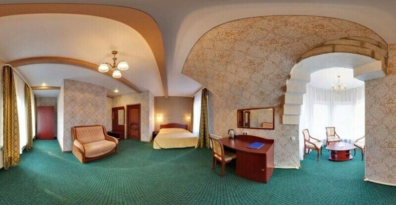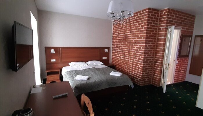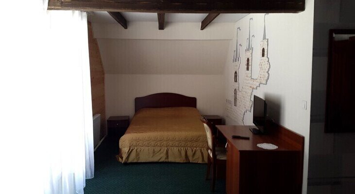 Отель представлен двумя трехэтажными зданиями, выполненных в стиле средневекового замка, создают неповторимую атмосферу. 20 номеров разных категорий с удобными кроватями, местами для хранения вещей, телевизором, холодильником и индивидуальным санузлом с душем и феном.