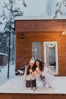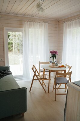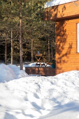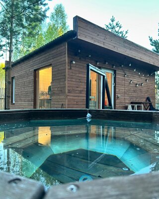 Каждый домик оборудован душем, туалетом, спальней и кухней. К услугам гостей просторная терраса, где можно насладиться свежим воздухом и чарующими видами. Домик для четырех человек предлагает уникальную банную чан-зону, позволяющую расслабиться после насыщенного дня. Второй домик идеально подойдет для романтического уединения.