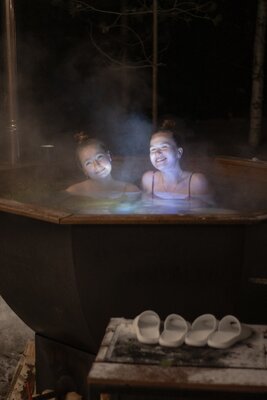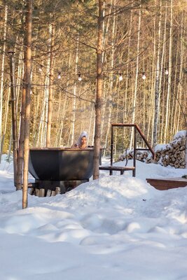 Глэмпинг «Дом Китов» предлагает своим гостям возможность насладиться отдыхом на свежем воздухе в уединении. Рядом с домом на 4 места располагается уютный банный чан, который станет идеальным местом для расслабления и восстановления сил. Здесь вы сможете погрузиться в атмосферу покоя и наслаждаться приятными моментами, окруженные живописными природными пейзажами.