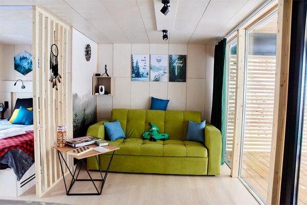 В ЁLKI можно с питомцем, но за это дополнительную плату, потому что проводится специальную уборку, в том числе во избежание аллергии у следующих постояльцев.