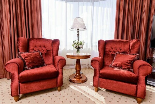 Уютная комната — общей площадью 22 кв.м — идеально подойдет для проведения деловых переговоров и встреч.