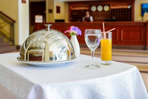 Вы можете сделать заказ в номер по специальному меню. Мы предлагаем для Вас широкий ассортимент напитков, горячих блюд, закусок и десертов.
