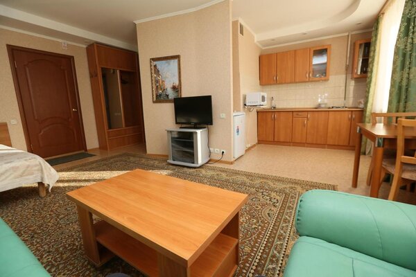 В комнатах имеются: санузлы, фен, телевизор, холодильник, доступ в Интернет Wi-Fi, круглосуточный сервис.